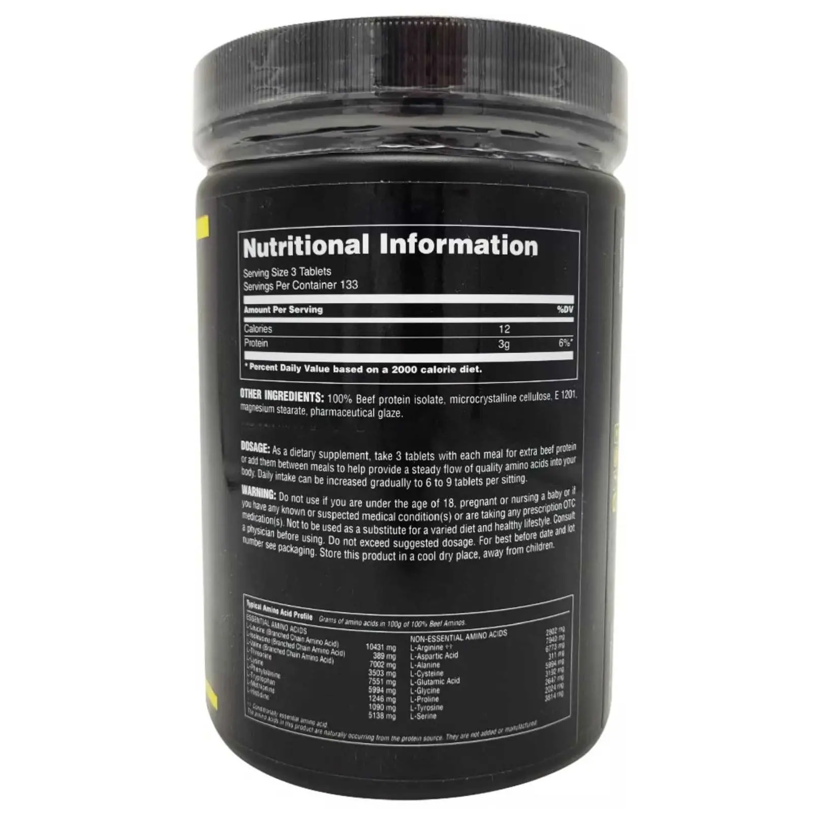 100% Beef Aminos ist eine einfach einzunehmende Pille, die dir alle Vorzüge von Rindfleisch in einem Nahrungsergänzungsmittel liefert. Zusätzlich hat Universal Rindfleischalbumin zum Aufbau von fettarmem Muskelgewebe hinzugefügt. Die in Beef Aminos enthaltenen Aminosäuren sind hochdosiert, um sicher zu stellen, dass dein Körper die wichtigen Aminosäuren erhält, die er braucht.